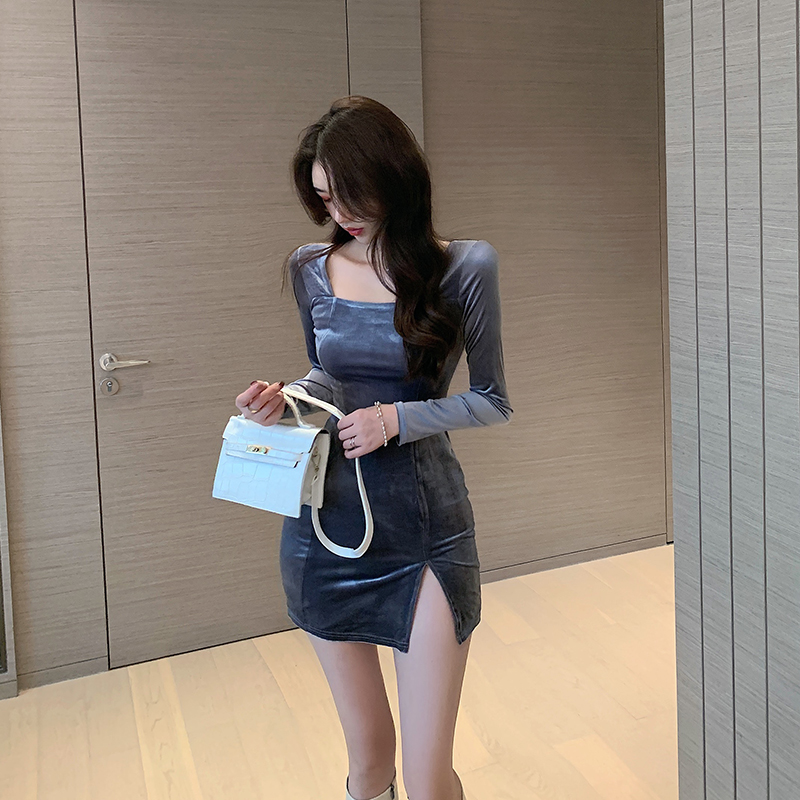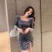 足浴店养生会所沐足桑拿荷叶边显瘦鱼尾性感衬衣领包臀裙连衣裙