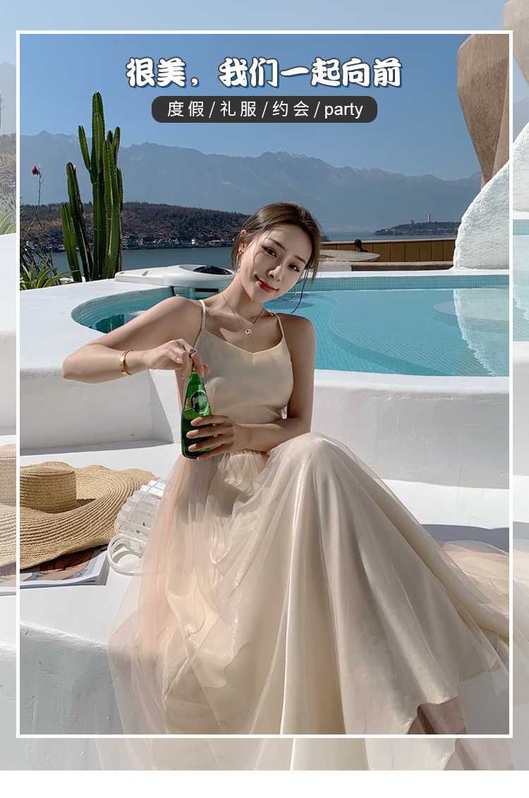 三亚旅游衣服超仙吊带露背海边度假长裙云南西双版纳连衣裙网纱裙