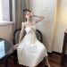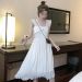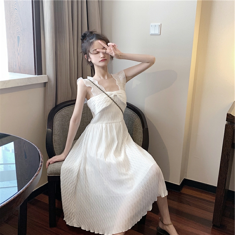 海边渡假沙滩裙超仙女小个子荷叶边气质显瘦白色露背吊带连衣裙夏
