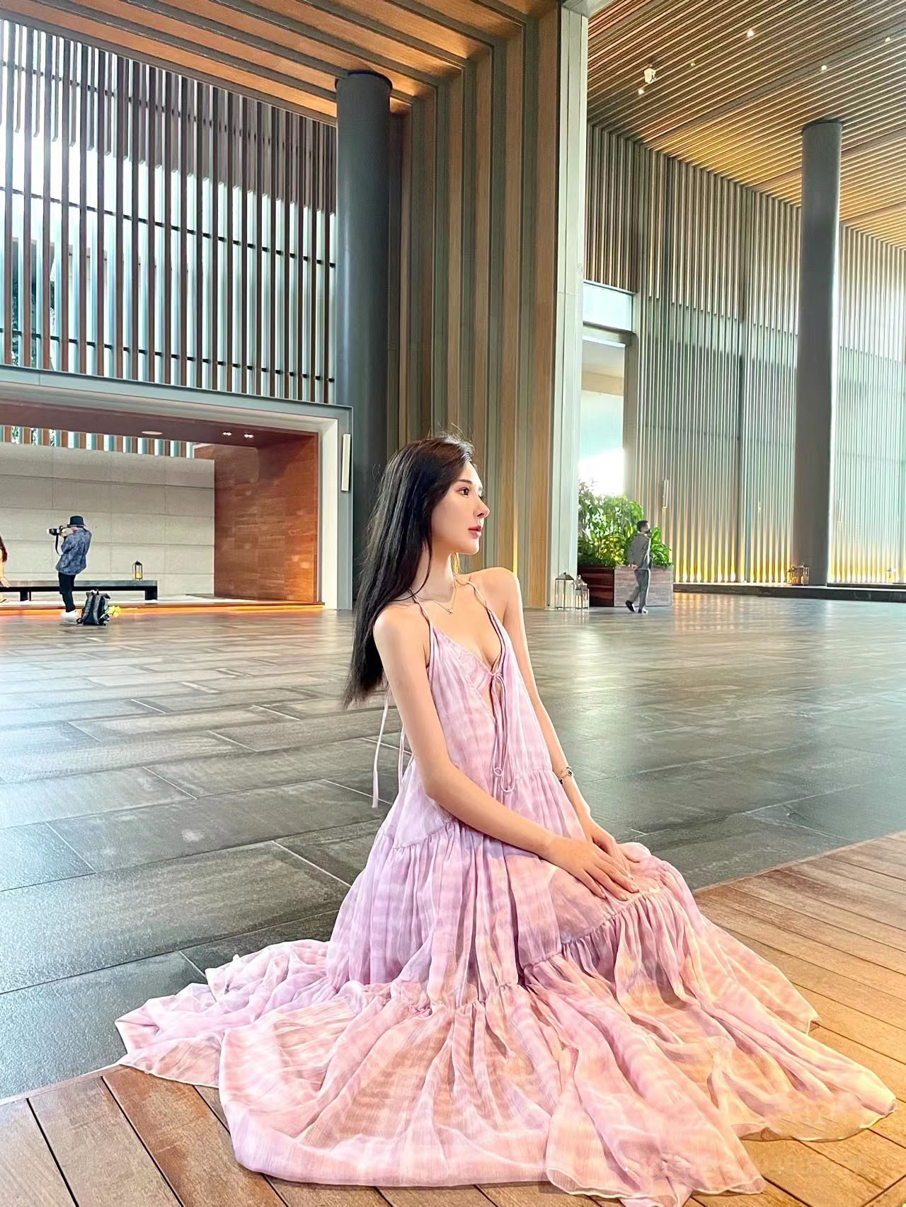 三亚海边度假风沙滩裙吊带性感露背淡紫色雪纺大摆仙气长裙拍照女