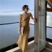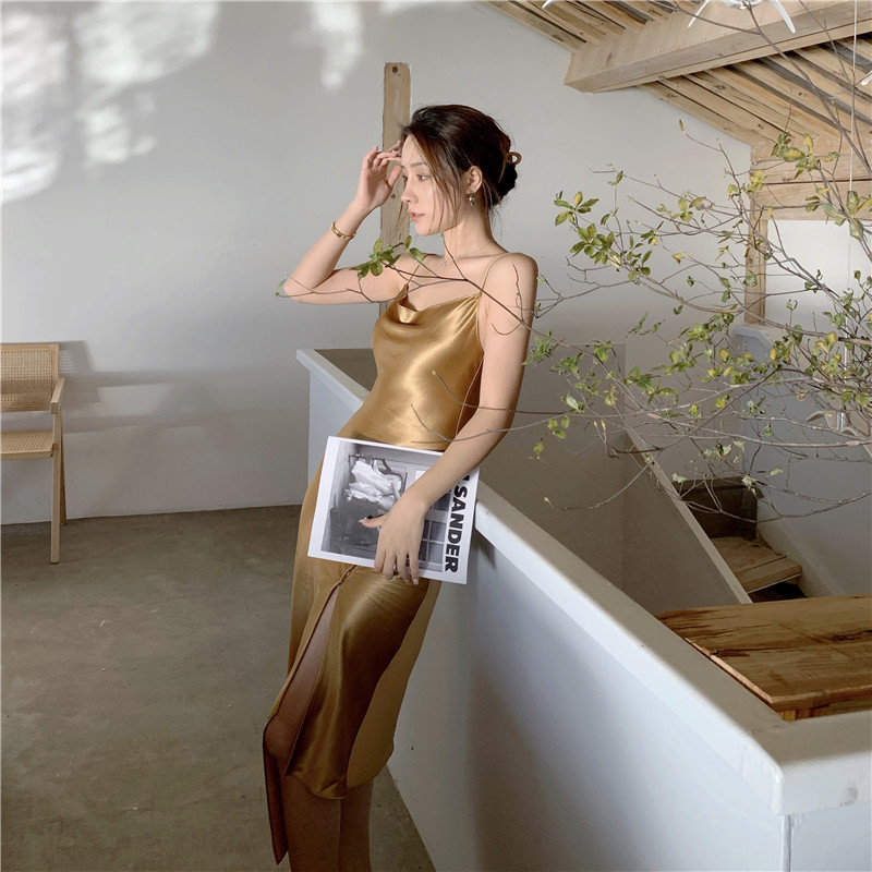 法式设计感缎面开叉连衣裙女2022新款秋装气质性感内搭荡领吊带裙