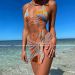 蓝橘拼色比基尼三件套三点式性感系腰海岛小众bikini三亚度假泳装