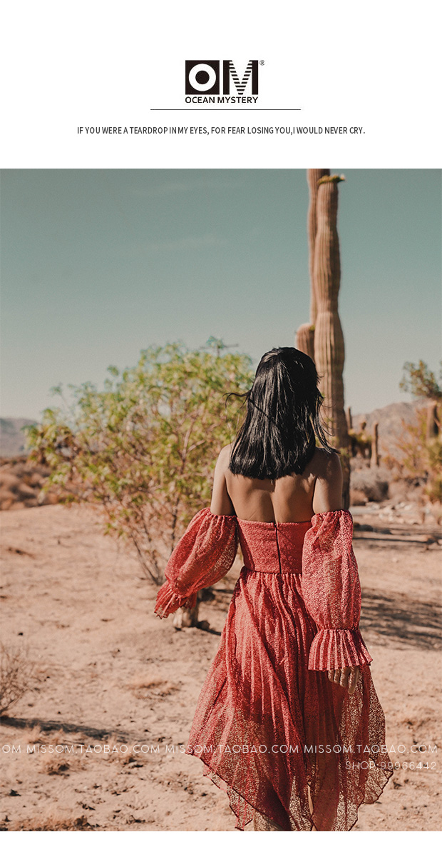 Ocean Mystery豆沙红性感连衣裙女新款显瘦百褶雪纺拼接沙滩裙子