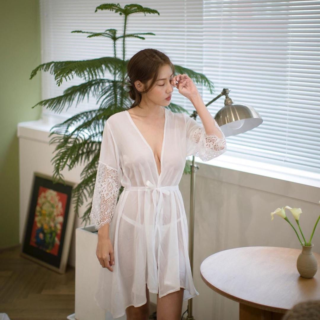 *睡裙女性感两件套*睡袍***高级感纯欲火辣小胸蕾丝睡衣