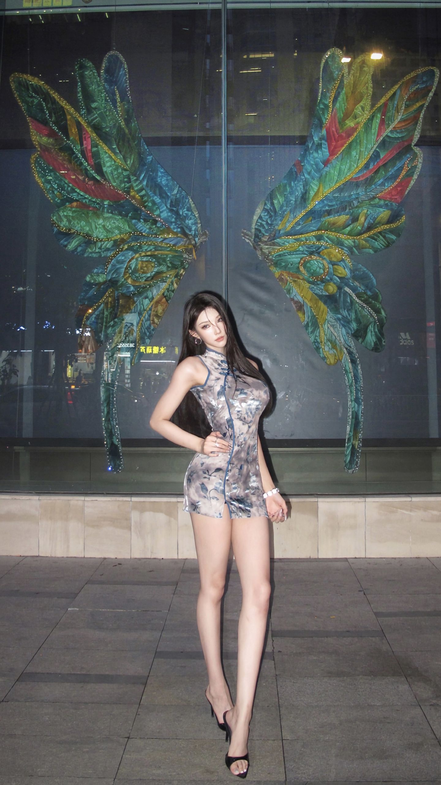 丝绸旗袍复古气质夏新款到脚踝高开叉走秀演出