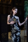 丝绸旗袍复古气质夏新款到脚踝高开叉走秀演出