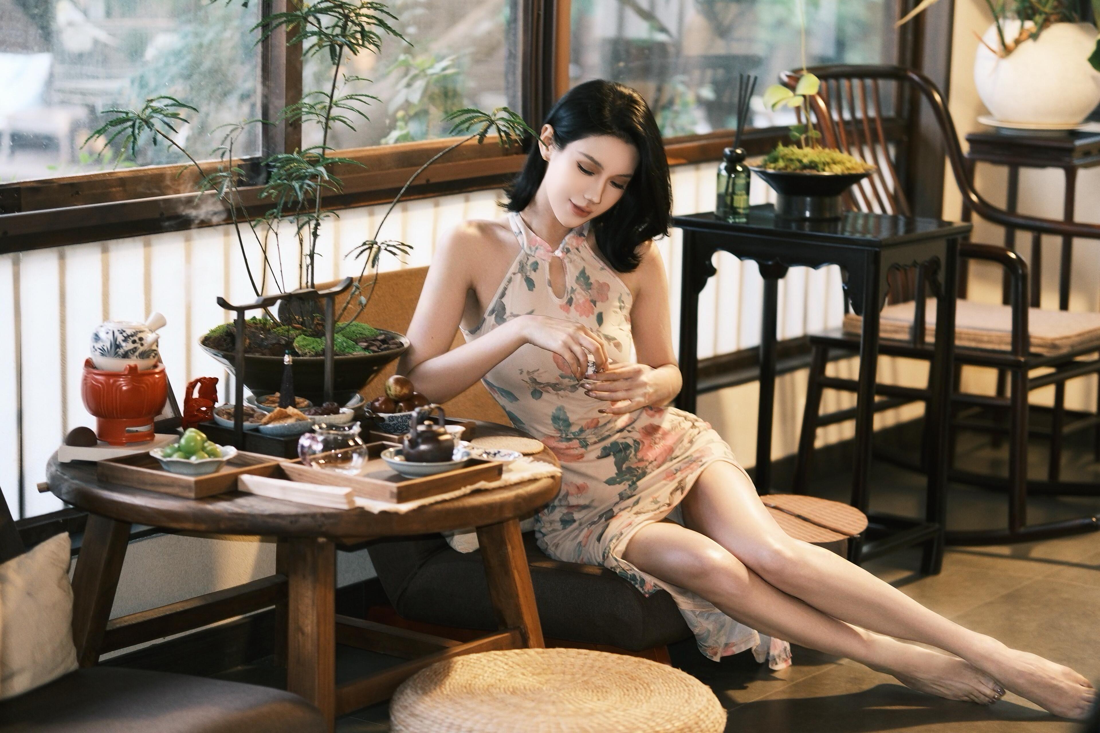 旗袍短款日常年轻款少女连衣裙真丝绸性感紧身显瘦改良