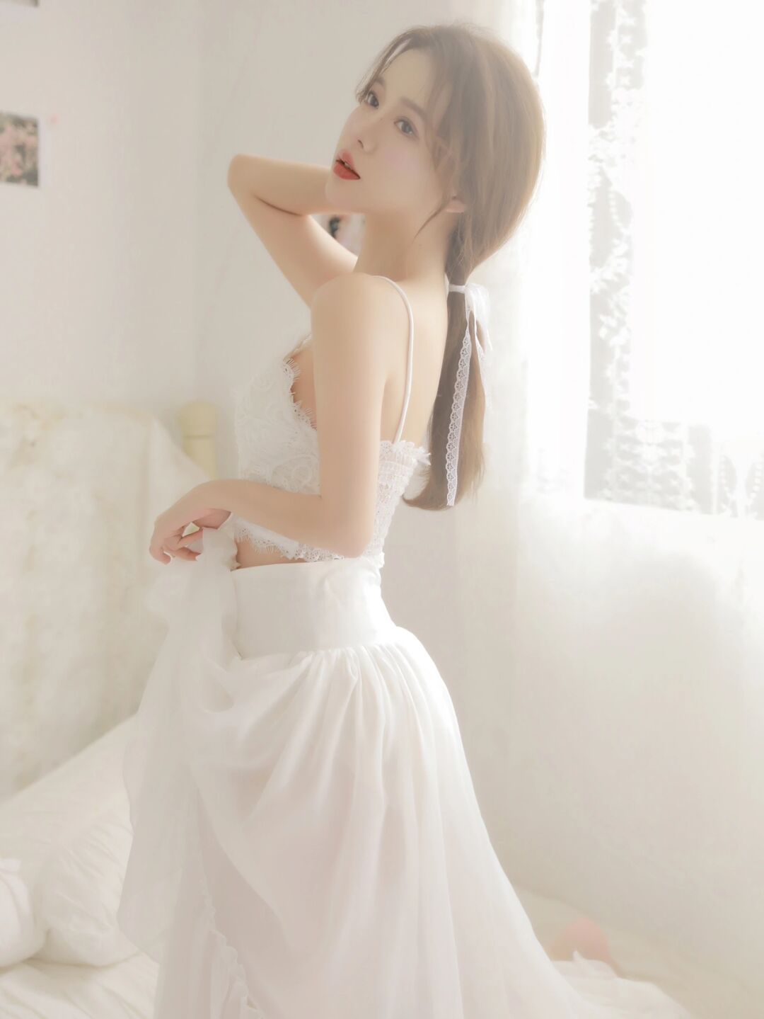 蕾丝睡裙带胸垫*纯欲风开叉*调情短裙小胸性感睡衣情趣内衣