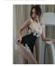 性感雪纺衬衫女长袖超短裙包臀睡衣职业套装睡裙夏季