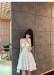 温柔气质显瘦百搭下摆毛边钻石百褶裙夏季新款连衣裙