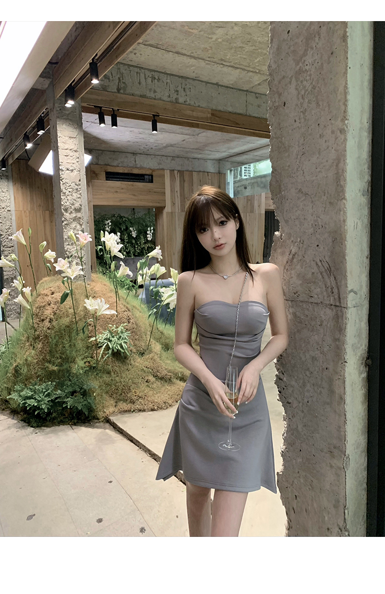 温柔气质显瘦百搭下摆毛边钻石百褶裙夏季新款连衣裙