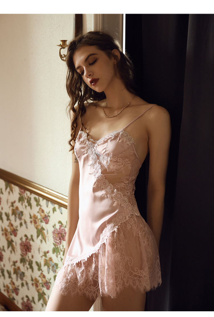 性感丝绸睡衣女冰丝薄款极度诱惑睡裙私房写真蕾丝裙