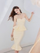 设计感超大立体抹胸连衣裙复古小众垂坠高腰大摆日常