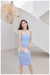 设计感立体2022新款纯欲蓝色飞飞袖收腰连衣裙