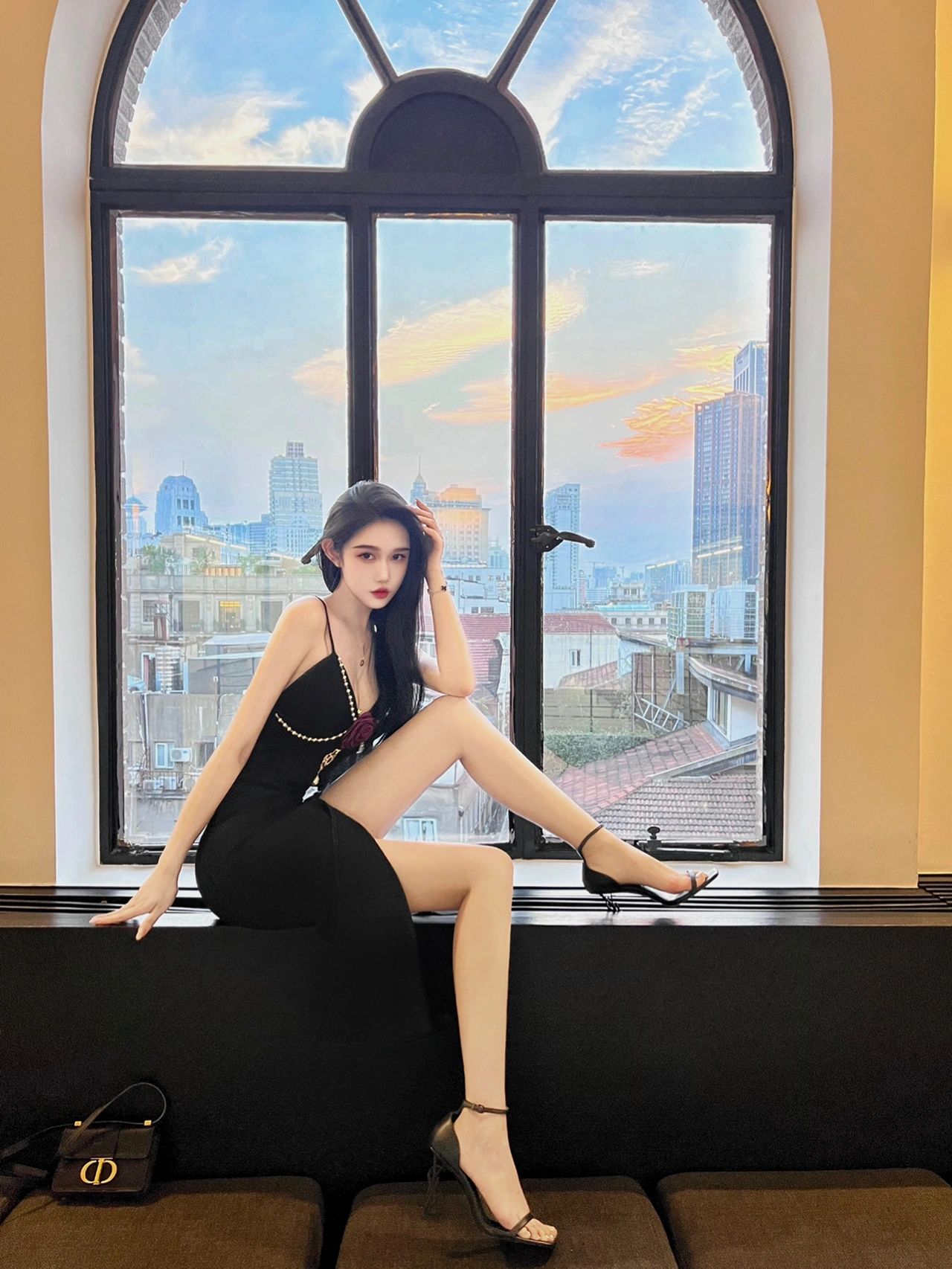 质感缎面抹胸连衣裙设计感大简约法式开叉