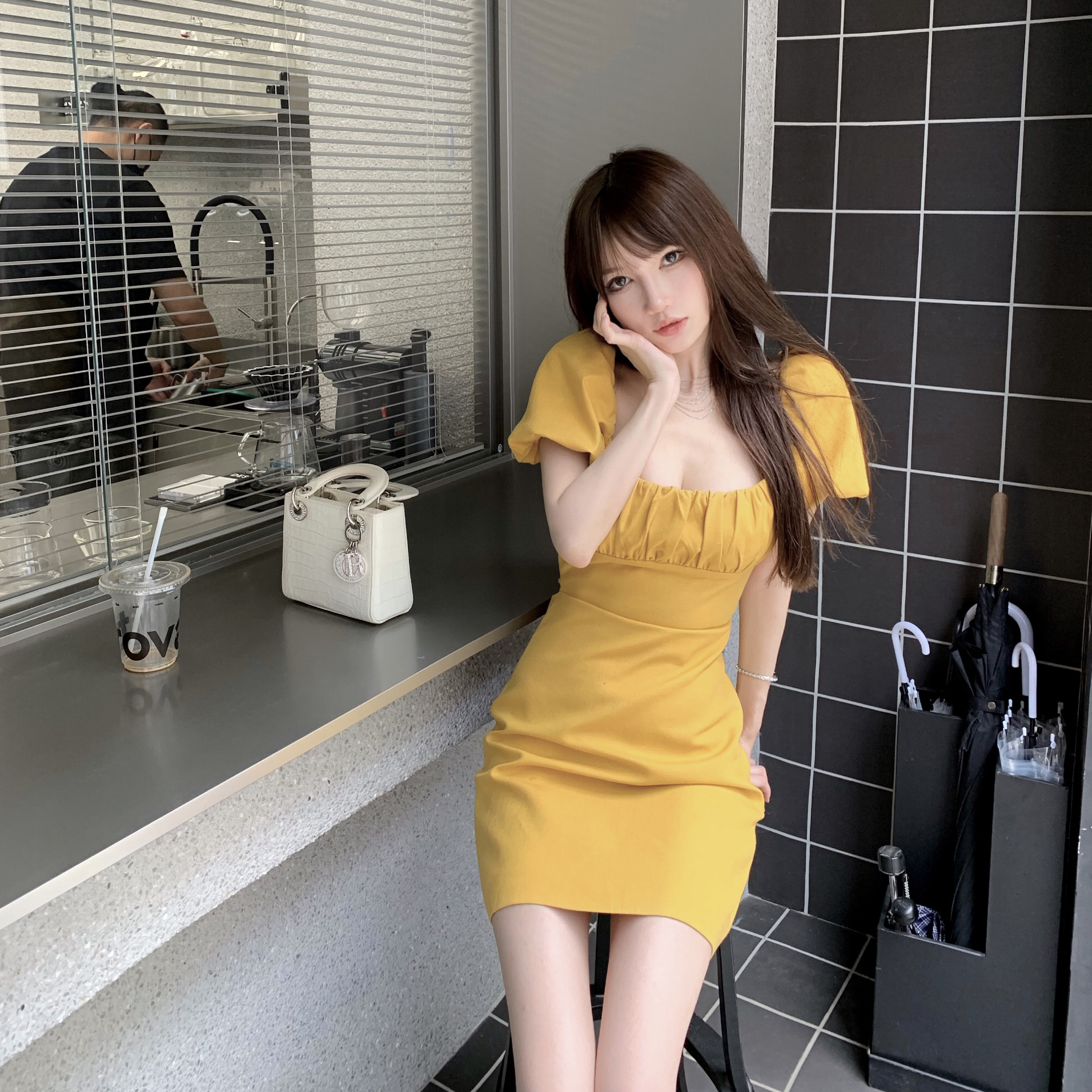 设计感法式露肩收腰包臀连衣裙