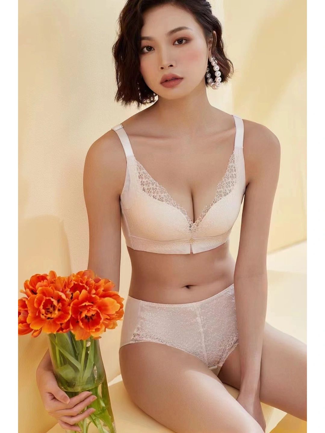 内衣套装女士蕾丝调整型无钢圈聚拢小胸厚文胸