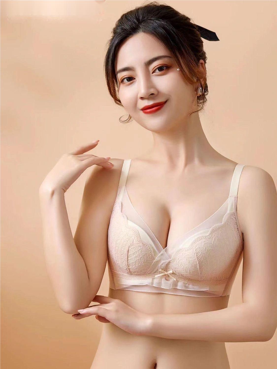 大胸显小内衣女无钢圈收副乳聚拢薄款防下垂大码乳胶文胸