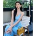 素雅迷人优雅性感温柔风复古日常削肩旗袍连衣裙长裙