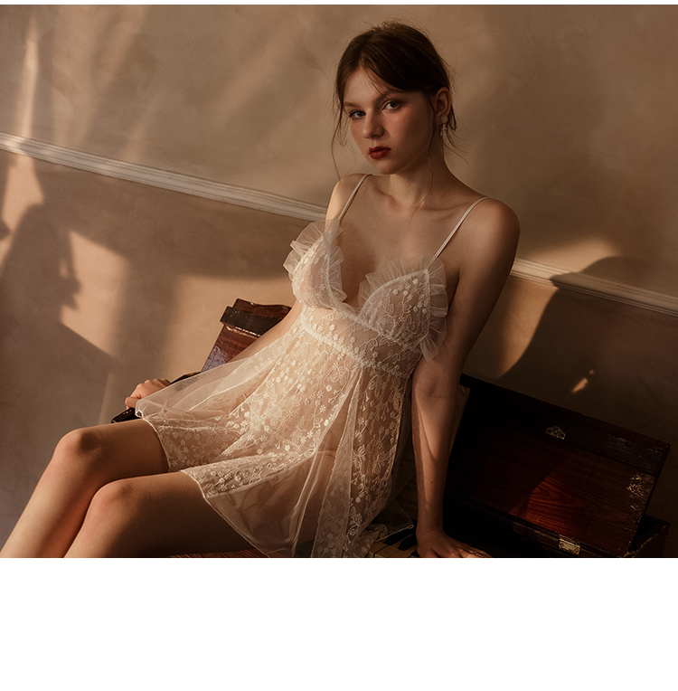 性感冰丝绑带睡裙女士夏秋季美背蕾丝私房内衣仿真丝睡衣
