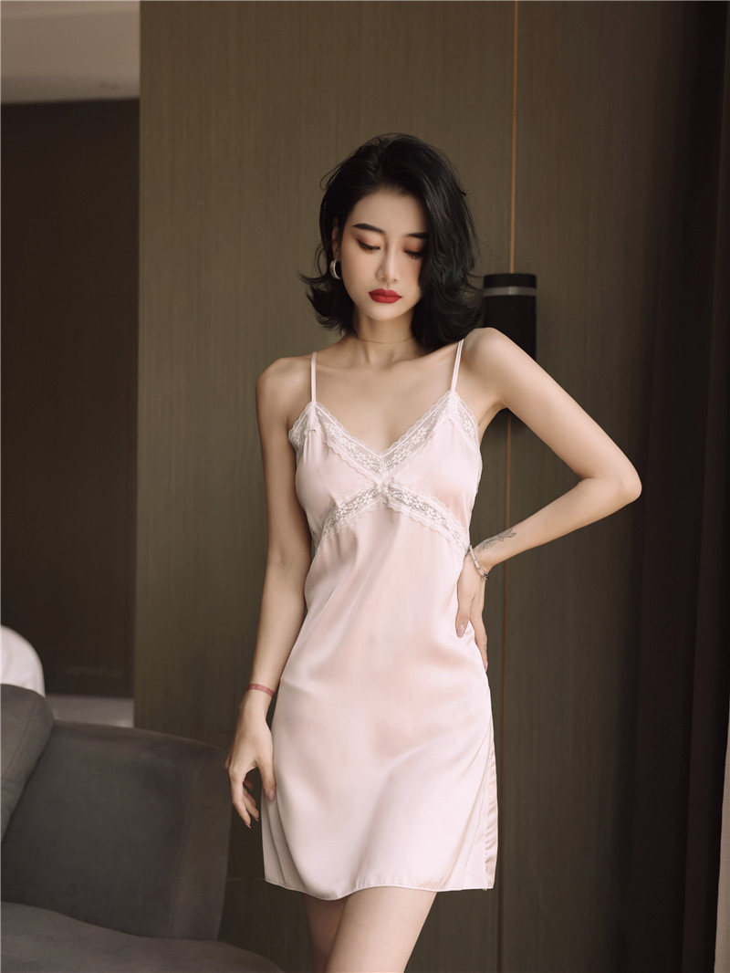 新款睡衣女夏季蕾丝性感胸垫开叉睡裙女夏天薄款
