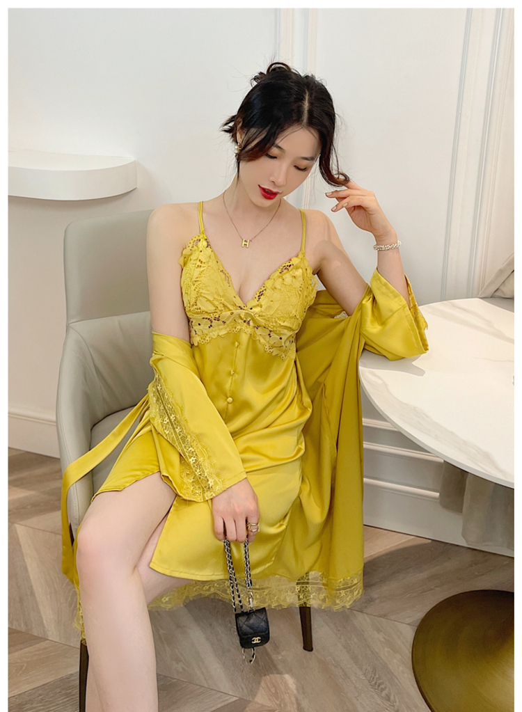 2022年新款夏季冰丝睡衣女性感火辣纯欲带胸垫睡裙睡袍两件套