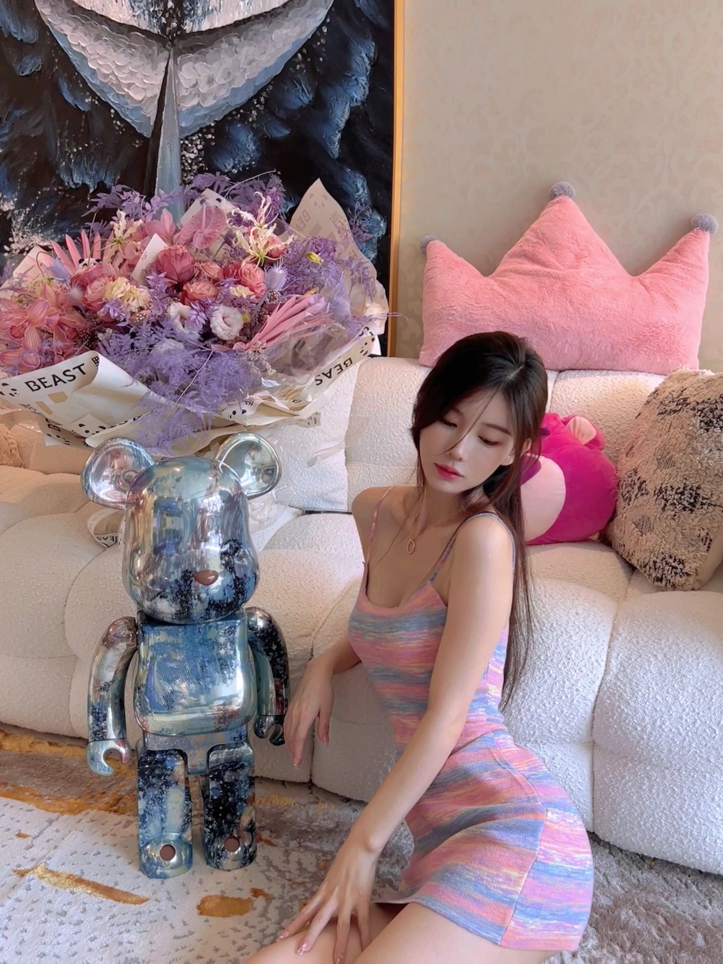 车载香水男士专用车内饰品摆件个性创意kaws考斯公仔车上装饰高档
