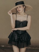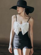 网红仙蝴蝶结吊带镂空木耳边平角显瘦显白