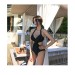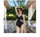 韩版新款网红遮肚交叉绑带性感连体泳衣女钢托聚拢比基尼温泉泳衣