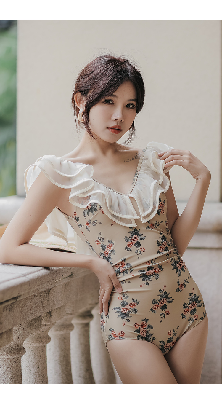 白色连体泳衣女遮肚性感高端新潮仙女范泡温泉网红款泳装