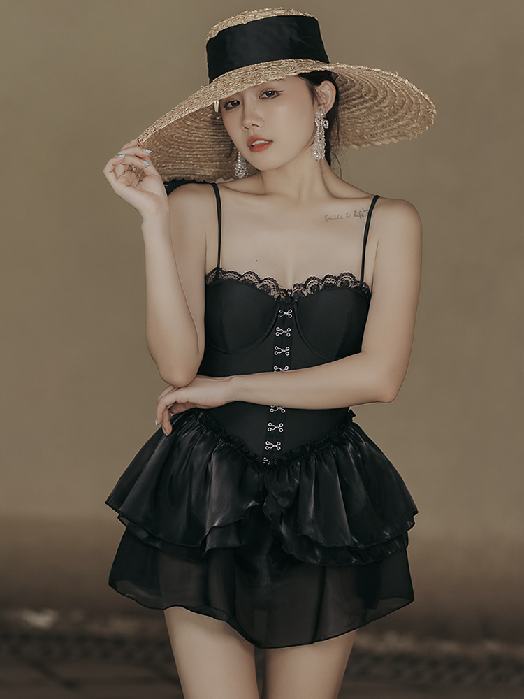 裙式复古蕾丝吊带网纱显瘦宫廷风