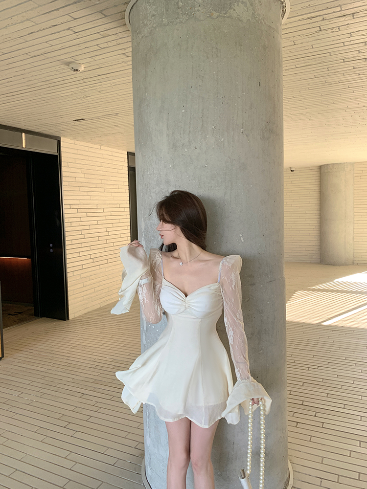 法式蕾丝连衣裙女春装2022新款收腰挂脖a字不规则裙子
