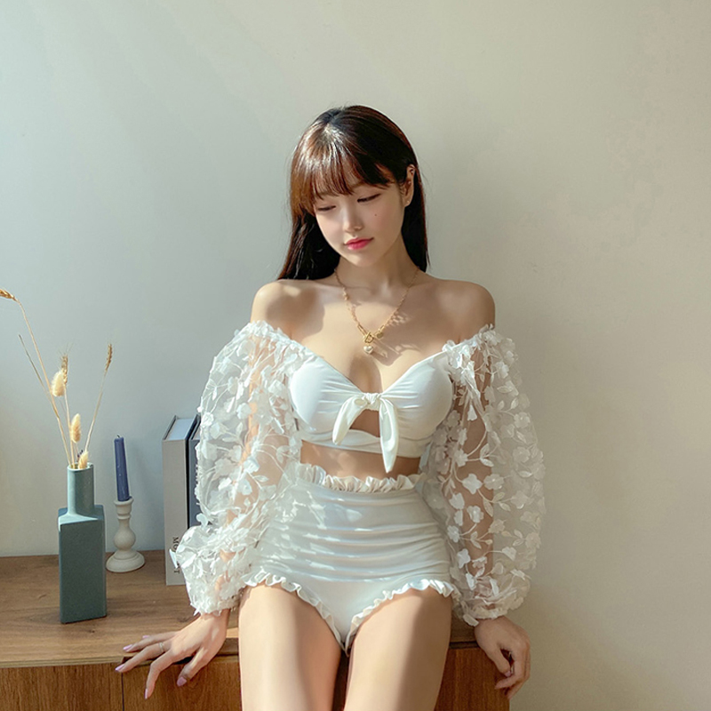 夏网红连体性感长袖仙女范钢托聚拢显瘦遮肉游泳衣