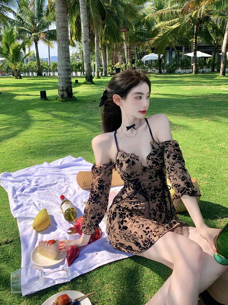 连体裙式遮肚显瘦纯欲风泡温泉游泳衣