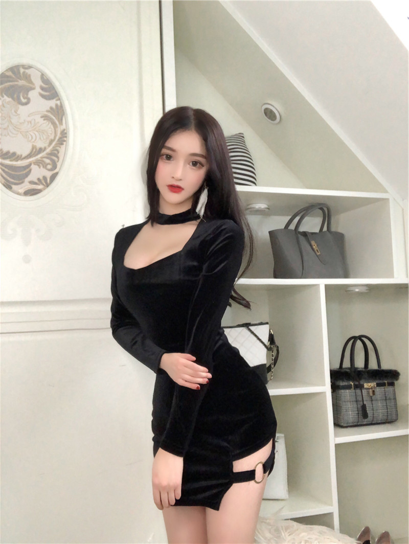 夜店女装性感低胸镂空技师夜场新款金丝绒修身显瘦包臀心机连衣裙