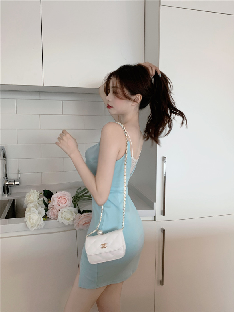 心机包臀吊带裙子2022年新款洋气减龄设计感镂空修身开叉连衣裙女