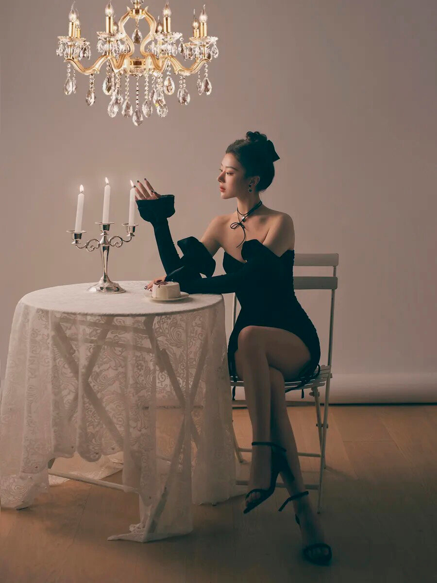蕾丝连衣裙设计感不规则包臀裙