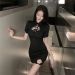 旗袍改良夏季复古黑色足浴技师工作服水疗性感挂脖露背镂空连衣裙