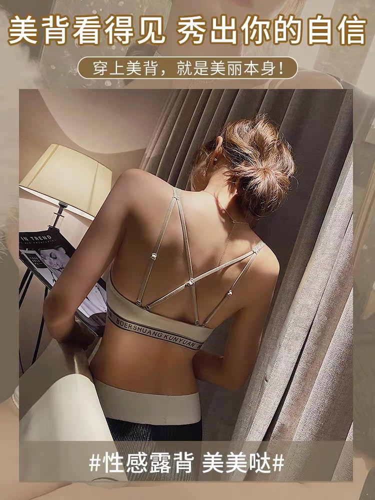 美背内衣女小胸聚拢套装性惑无钢圈薄款交叉细肩带平胸专用文胸春