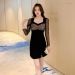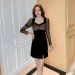 2022新款气质网纱珠片拼接小个子女神连衣裙打底显瘦a字连衣裙