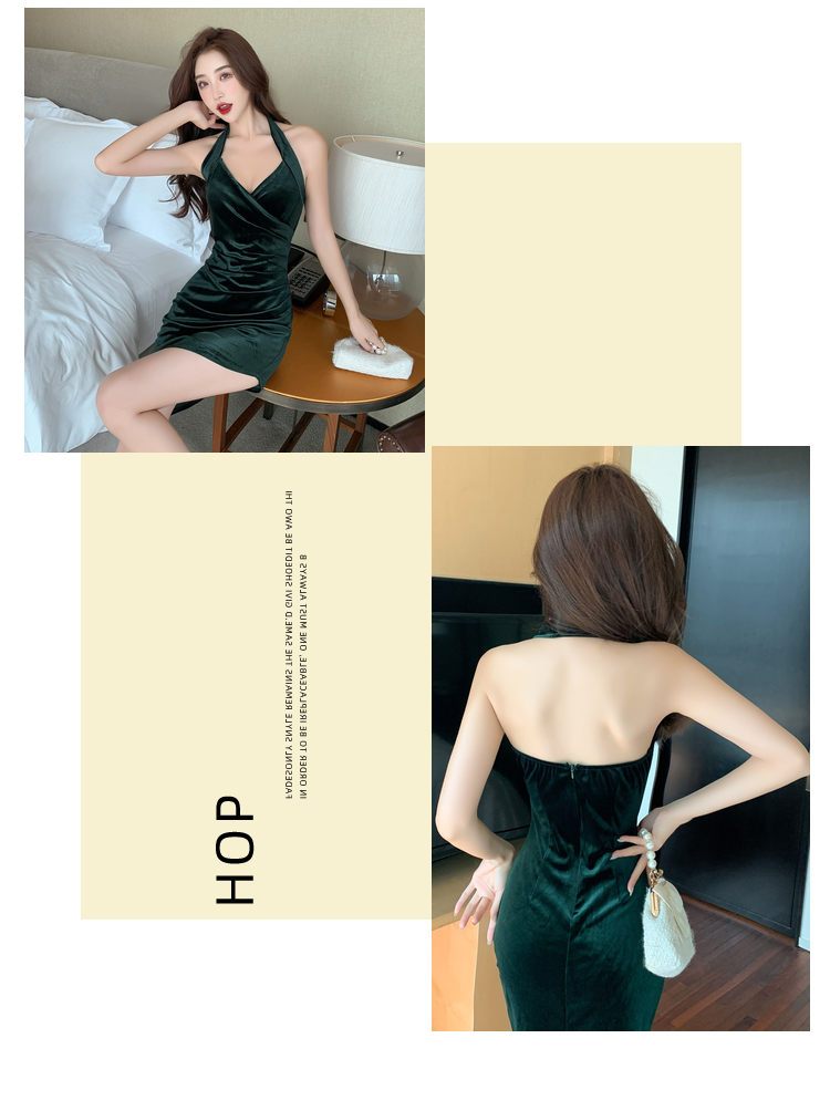夜场裙子女性感低胸蹦迪酒吧吊带短裙夜总气质中长裙金丝绒打底裙