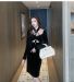 夜店装上班足浴足疗技师衣服性感镂空露肩收腰包臀金丝绒连衣裙